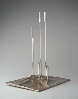 Centre de table Orgues 5 Tuyaux, métal argenté, designed by Jacques Sitoleux, 1969, H. 33 cm (K4889 - Inventaire GO1450). Photographe © Jean-Michel Kollar.